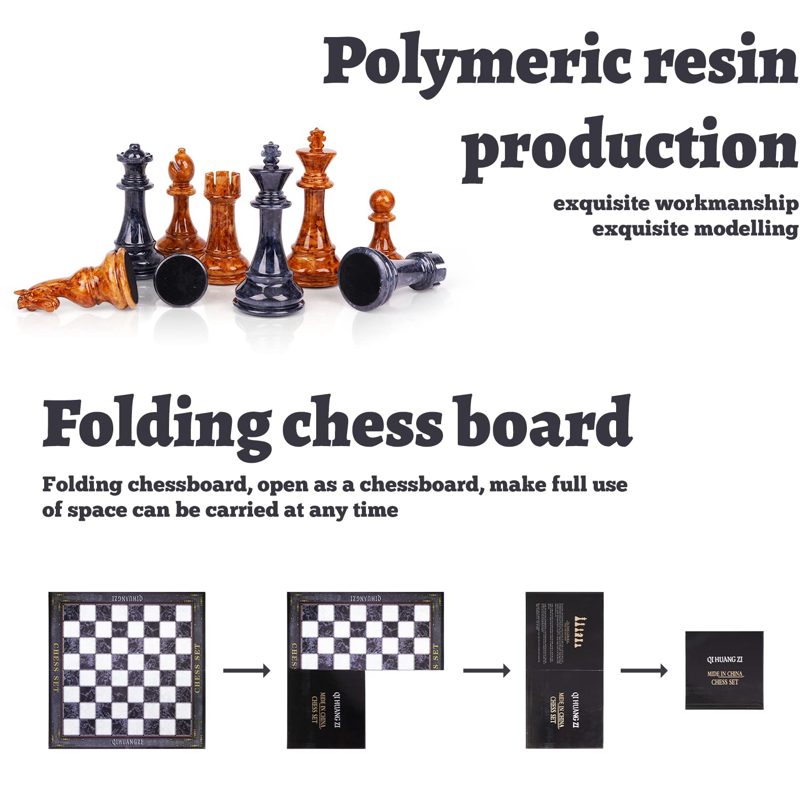 - Super large chess board:the size of the chessboard is 18.5*18.5inch,Each chess board set offers an exceptionally smooth playing surface that won't tarnish or warp. You can unfold elegance each time you want to play