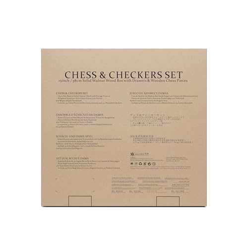 A&A 15 inch Walnut Wooden Chess Sets with Storage Drawer, Triple Weighted Chess Pieces,3.0 inch King Height,Walnut Box,Walnut & Maple Inlay, 2 Extra Queen,Classic 2 in 1 Chess and Checkers Board Games