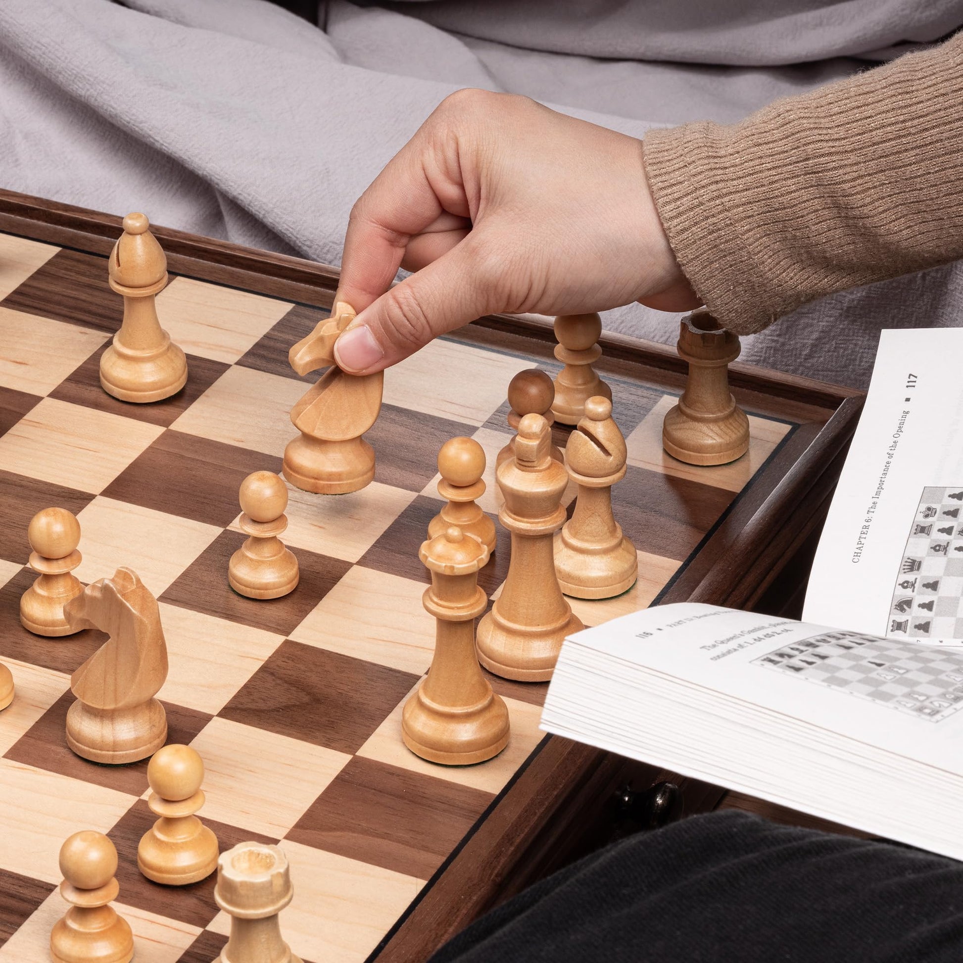 - Solid Wood Material: This is a very nice chess set with a board made from real maple and walnut,good quality and built to last. Our chess materials are environmentally friendly, they are not dyed with any chemical process and have a high level of safety.