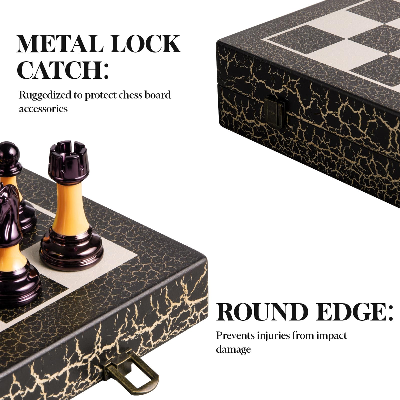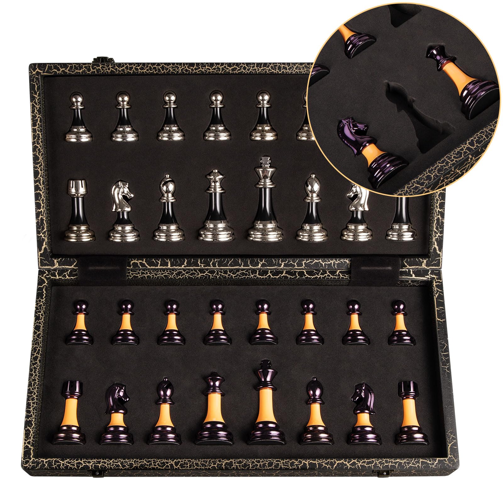 - Built-in Independent Storage Compartment: The convenient chessboard set stores each chess piece in a separate chess slot, which not only protects the chess pieces from collision and wear but also prevents shaking and loss of chess pieces when carrying. It is easy to store after playing chess. There will be no mess, the brass hinges allow the board to be flexibly opened and closed without the board deforming. Very suitable for novices and you who don’t know how to store
