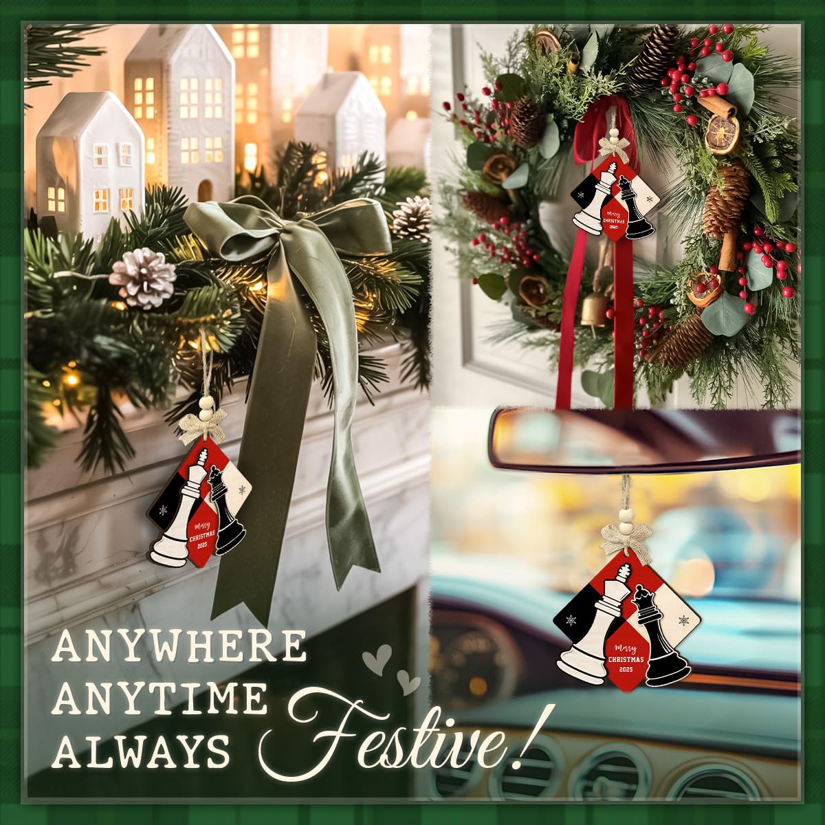 CHOANG Chess Christmas Ornament 2025 - King & Queen Merry Xmas Ornaments, 2 Layer Wood for Chess Lover, Coach, Player, Club, Friend - Tree Hanging Decoration for Kids, Adults